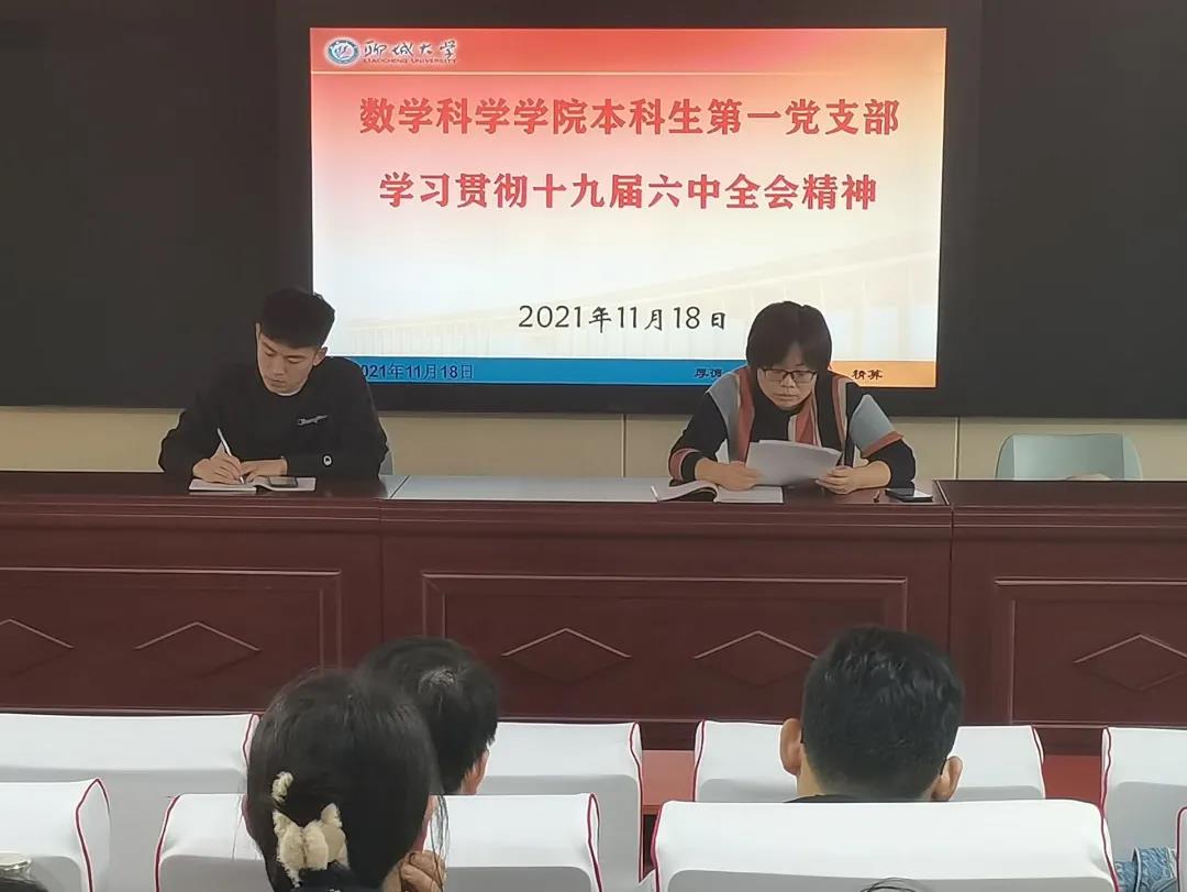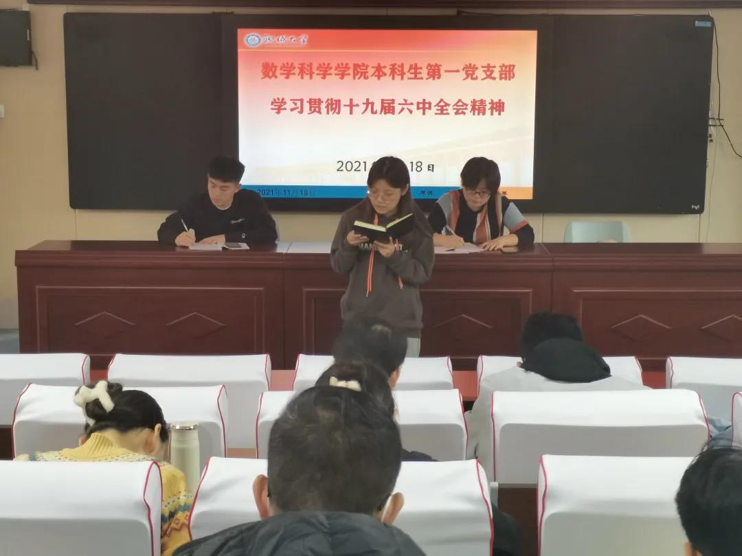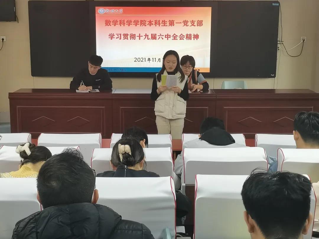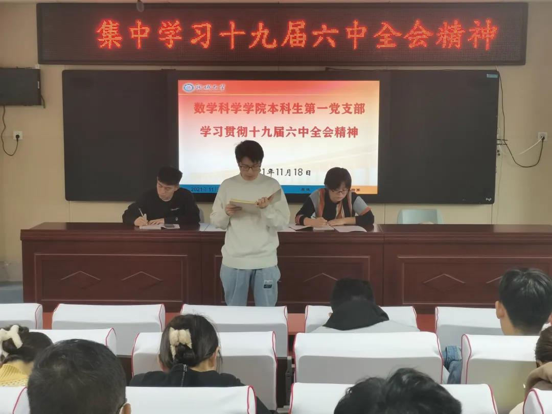 张书记强调党的十九届六中全会是在重要历史关头召开的一次具有重大历史意义的会议。会议中张书记及李老师带领党支部成员认真学习了十九届六中全会通过的《中共中央关于党的百年奋斗重大成就和历史经验的决议》,并且将自己的个人见解与党支部成员进行深入交流。