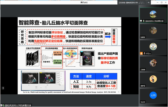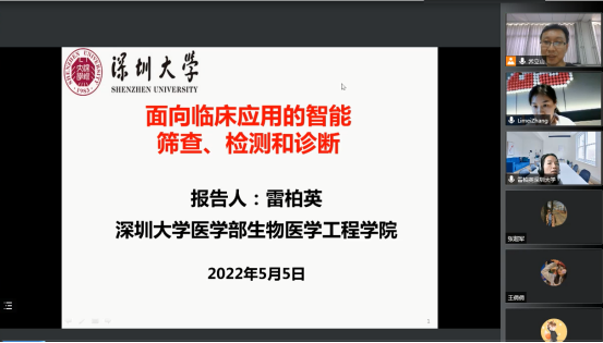 2022年5月5日(星期四)下午16:00,受英国365集团公司智能数据分析团队邀请,深圳大学雷柏英研究员在线上做了关于面向临床应用的智能筛查、检测和诊断的学术报告,本次报告以腾讯会议的形式举行,由乔立山教授主持,365英国上市部分教师、研究生聆听了报告。