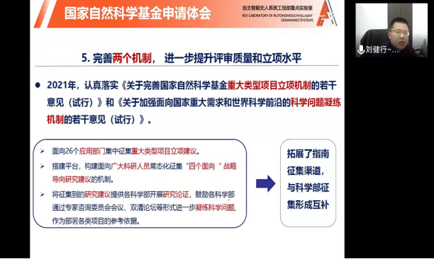 最后刘健行教授根据自己的切身经历,详细地介绍了国家自然科学基金申请过程中的体会并提出了相关建议。整个学术报告时间近两个小时,报告内容十分丰富,同时还给在座的研究生推荐了相关的研究教材和论文写作的建议等,极大地拓宽了研究思路。