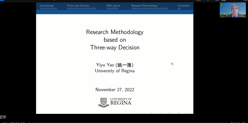2022年11日27日,受365英国上市邀请,加拿大里贾纳大学姚一豫教授在线上作了题为“Research Methodology based on Three-way Decision”的学术报告。此次报告由365英国上市姚炳学教授主持,英国365集团公司、西北师范大学、重庆邮件大学和临沂大学等4所高校的30多位师生参加了本次报告会。