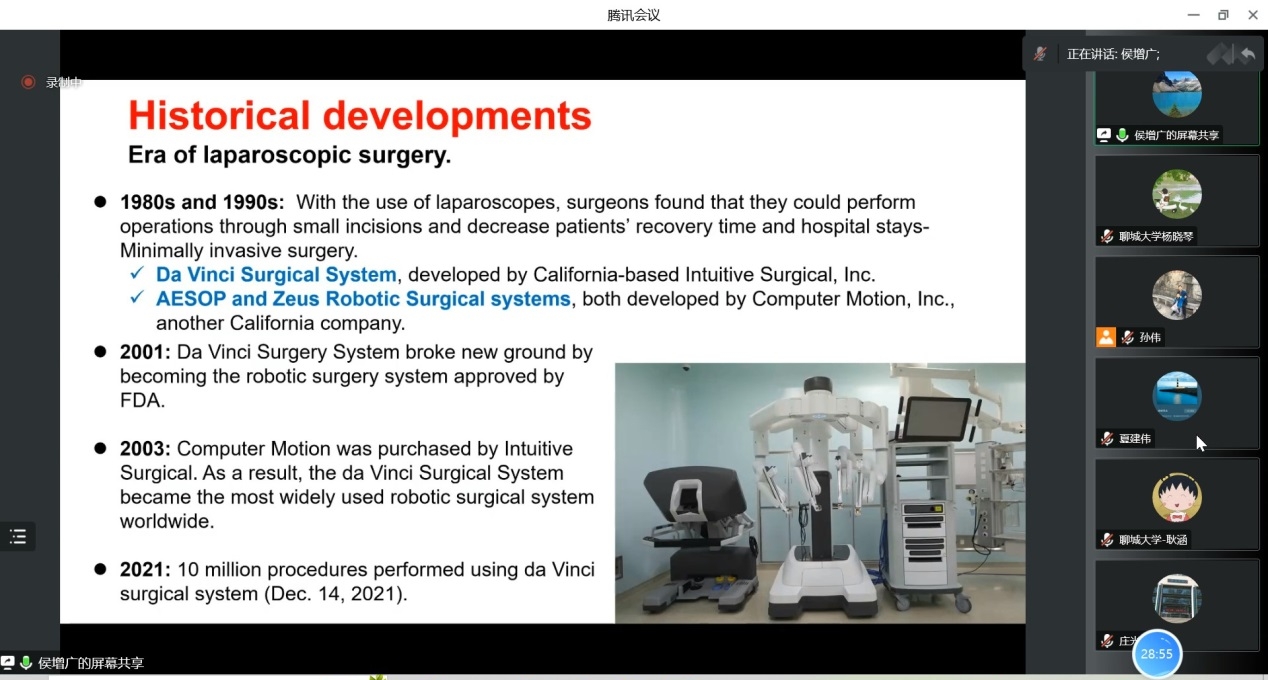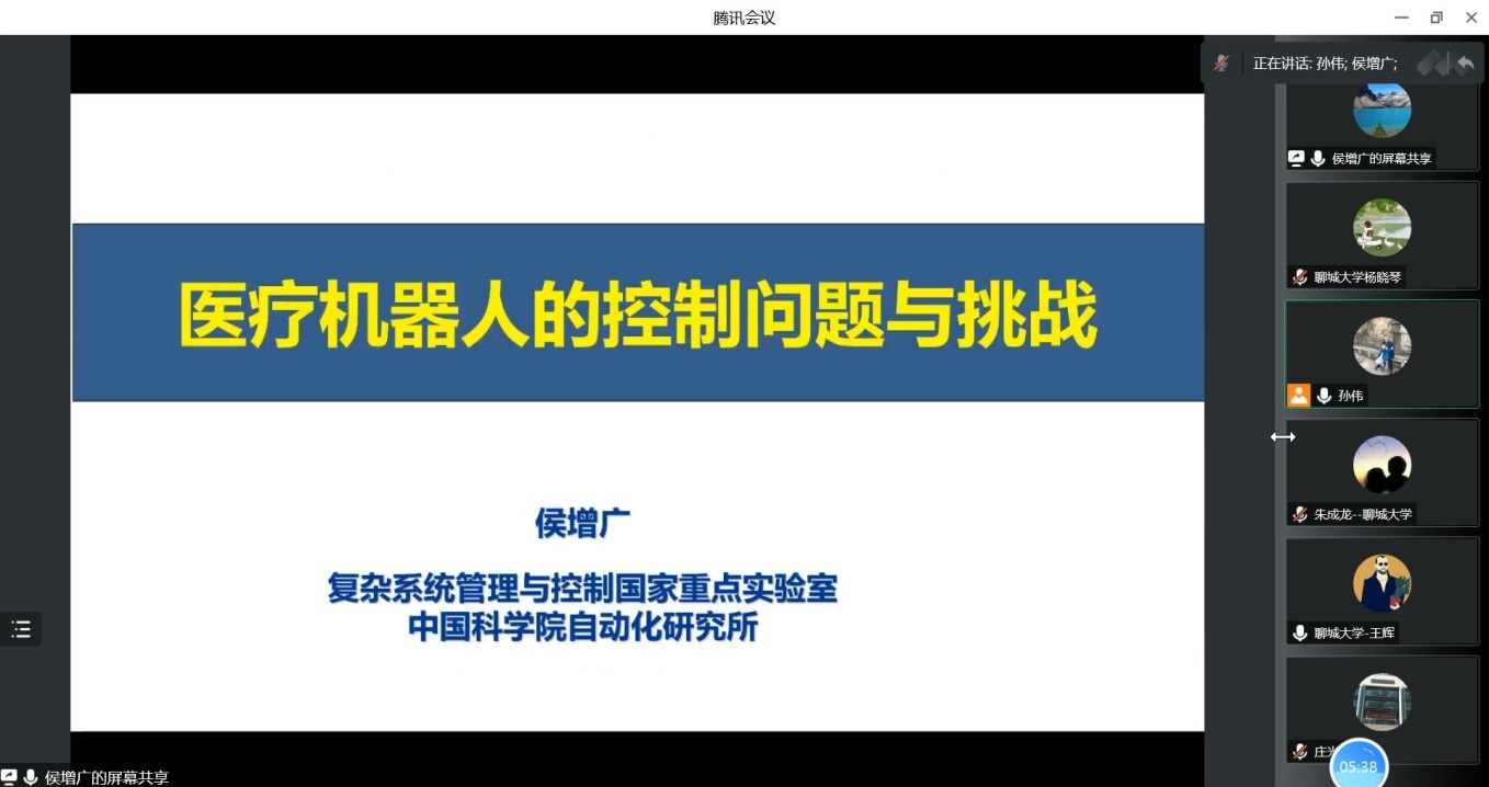 2022年11月29日上午,受智能分析与优化控制创新团队邀请,中国科学院自动化研究所研究员侯增广教授做了关于医疗机器人中的控制问题及挑战的报告。本次报告以腾讯会议的形式举行,由孙伟副教授主持,365英国上市部分教师、研究生聆听了报告。