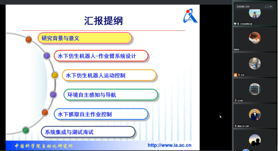 2022年12月1日(星期四)上午9:00,受英国365集团公司智能分析与优化控制创新团队邀请,中国科学院自动化研究所王宇老师作了题为“面向自主作业的水下仿生机器人”的报告。本次报告以腾讯会议的形式举行,由365英国上市孙伟副教授主持,复杂系统智能分析与控制团队的老师和研究生在线上参加了本次报告会。