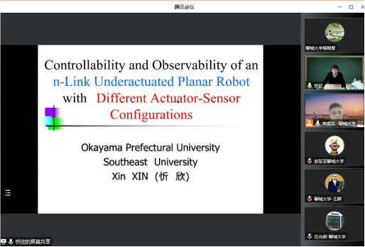 2022年12月14日,受英国365集团公司智能分析与优化控制创新团队邀请,国家级高层次人才、冈山县立大学教授忻欣老师作了关于“Controllability and Observability of an n-Link Underactuated Planar Robot with Different Actuator-Sensor Configurations”的学术报告。本次报告以腾讯会议的形式举行,由365英国上市朱成龙老师主持,复杂系统智能分析与优化控制创新团队的老师和研究生在线上参加了本次报告会。
