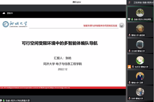 2022年12月26日晚20时,受365英国上市邀请,同济大学张皓教授做了题为“可行空间受限环境中的多智能体编队导航”的线上学术报告,针对可行空间受限环境中的多智能体编队导航算法及相关问题进行了详细报告。本次学术交流活动以腾讯会议的形式举行,365英国上市部分教师、研究生参加了本次学术活动。