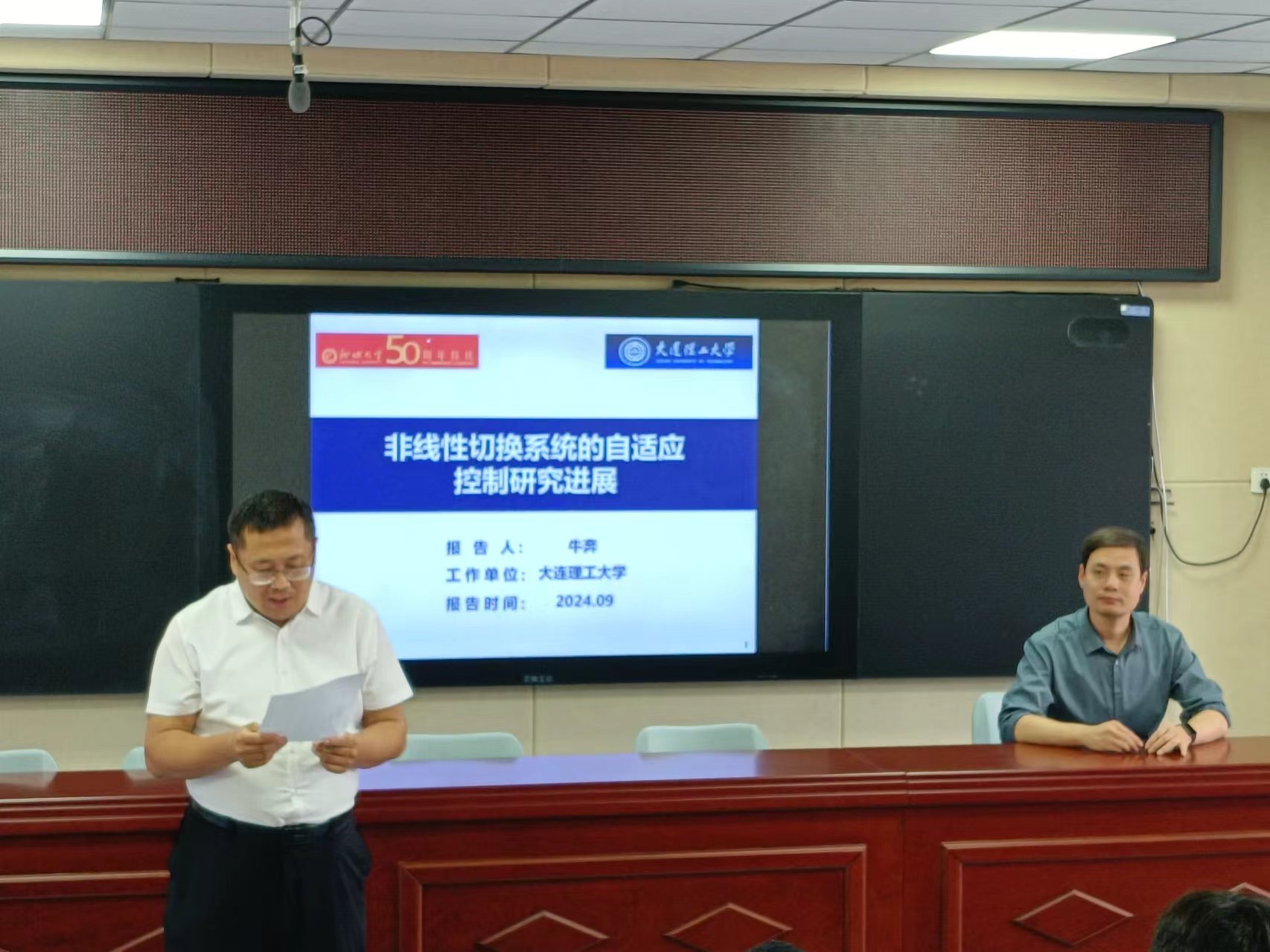 2024年9月25日下午,大连理工大学牛奔教授应邀做客聊大讲坛,作了题为“非线性切换系统的自适应控制研究进展”的学术报告。报告会由365英国上市副院长赵军圣主持。来自365英国上市的五十多名教师和研究生听取了报告。