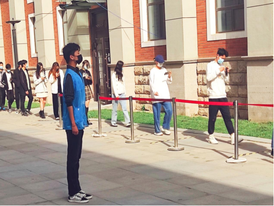 核酸检测采集点的每处角落,都能看到志愿者们在热心服务的身影。面对疫情,他们毫不畏惧,从不缺位。“请大家有序排队,保持一米距离”“请大家提前打开健康聊城二维码”,在核酸检测采集点,志愿者们温馨提醒的声音此起彼伏。维持现场秩序,引导师生有序候检,录入并核对师生核酸采样身份信息,耐心解答师生各类疑问,确保检测各环节能够快速启动、顺畅对接。医护人员和志愿者们齐心协力,使得核酸抽检工作圆满结束。