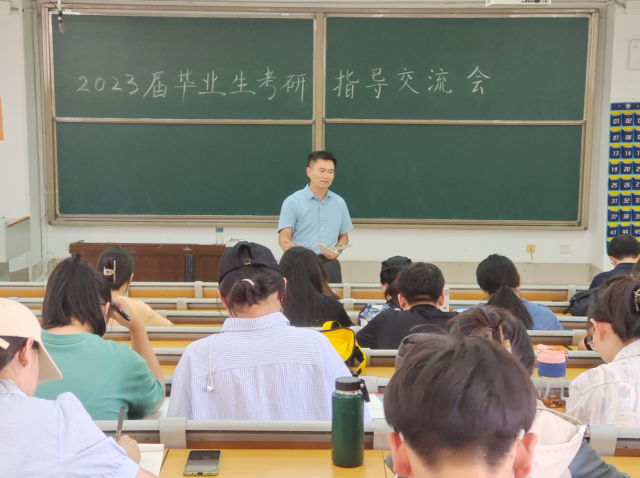 交流会伊始,张进军简单介绍了我院近几年考研情况,他告诫大家,用知识改变命运一定是一条贯穿一生、终身受用的道路。随后,夏建伟从多变的考研政策、如何理性对待考研两个方面向同学们讲解考研前的准备工作,他用“革命尚未成功,同志还需努力”激励同学们在考研路上坚定目标,永不放弃。