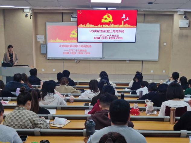 樊树芳以“让党旗在新征程上高高飘扬”为主题,从“新形势下修改党章顺理成章、二十大对党章做的重要修改、如何做一名合格的共产党员”三方面展开讲述。她强调,要想成为一名合格的共产党员,就要具备崇高的理想追求和坚定的政治信念,加强理论学习,提高党性修养,为共产主义事业接续奋斗。