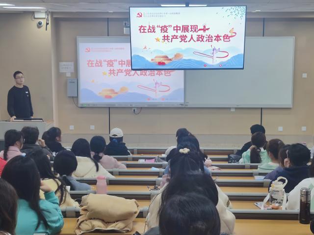 姚三乐以“在战疫中展现共产党人政治本色”为主题,从“深刻理解伟大抗疫精神的重要意义、在践行抗疫精神中开拓进取”两方面展开讲述,分享了抗疫一线的感人故事,并教育引导同学们要深刻认识当前疫情防控的严峻性和复杂性,理解国家疫情防控的各项要求,掌握疫情防控的有效措施,自觉做好自身防护,同时鼓励同学们要积极主动作为,将青春力量凝聚到理性爱国、同心抗疫的伟大实践中。