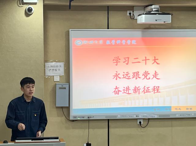 李浩以“学习二十大 永远跟党走 奋进新征程”为主题,带领同学们回顾了党的二十大的背景、意义及主要议程。他强调,学习党的二十大精神,是当前和今后一个时期的首要任务,鼓励同学们以多种形式深入学习党的二十大精神,树立远大的理想和抱负,将实现个人价值的目标与时代奋进的目标结合起来,在不懈奋斗中实现人生价值。