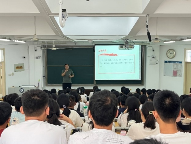 学院始终坚持以习近平新时代中国特色社会主义思想为指导,将思想育人作为“三全育人”体系的重要内容统筹推进。一是用党的理论引领新生。9月2日,学院党委副书记以“中国共产党人的精神谱系简介”“大学生与大学精神”为主题,为全体新生同上一堂思政大课,补足“精神之钙”;二是用家国情怀激励新生。学院利用9月3日开展的“国旗下话成长”主题升旗仪式、9月5日开展的星火影院《金刚川》主题观影活动等,强化了新生的社会主义核心价值观,增强了责任感、使命感。