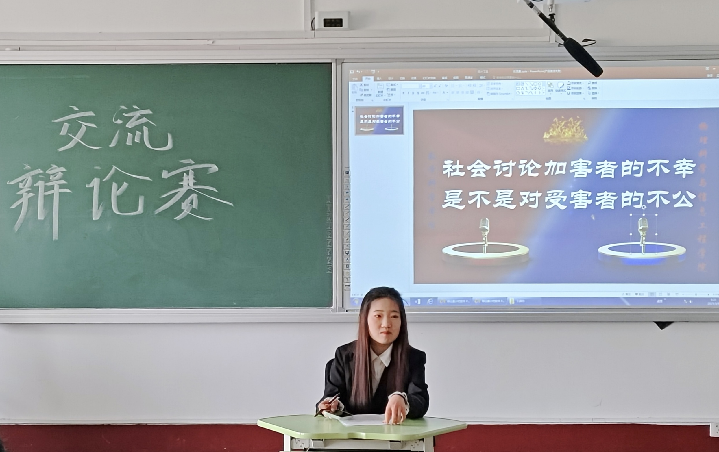 本次辩论赛双方分别围绕辩题“社会讨论加害者的不幸,是/不是对受害者的不公”展开交锋。活动伊始,主持人介绍比赛的规则与注意事项,正反方辩手进行自我介绍。立论环节,正方凭借严密的逻辑架构和充分的论据支撑,清晰地阐述“社会讨论加害者的不幸,是对受害者的不公”的观点,反方则从不同视角切入,凭借敏锐的批判性思维,精准剖析正方观点,展开有力反驳。自由辩论环节,双方你来我往,在交锋中不断拓展思维边界,展现出卓越的思辨能力。