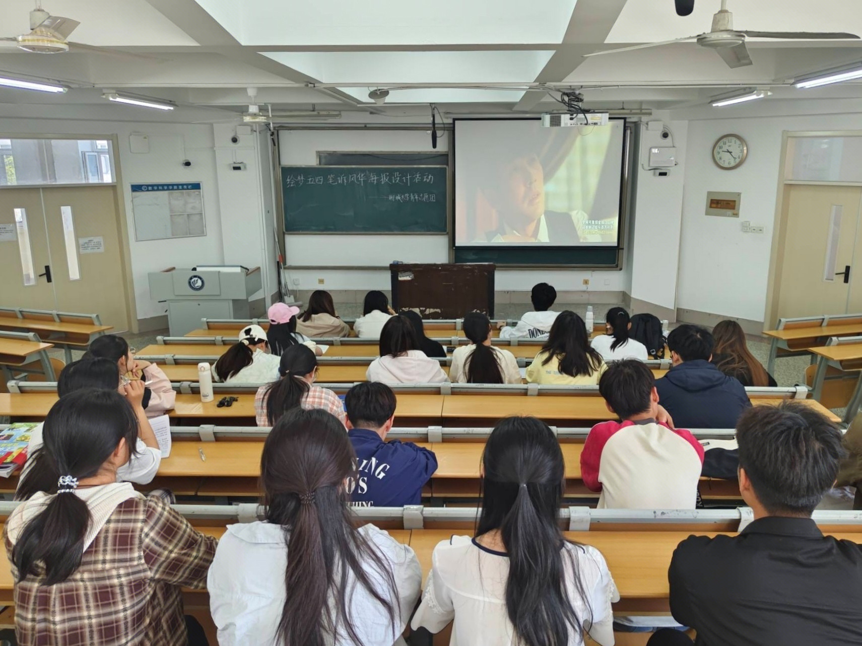 活动第二阶段,学生观看有关传承五四精神的视频,在银幕光影交织中开启了一场跨越时空的精神对话,跌宕起伏的剧情,鲜活生动的人物,让革命先辈的信仰之光,照亮学生奋进之路,使学生体会到幸福的来之不易,更加坚定传承红色基因、担当时代使命的决心。