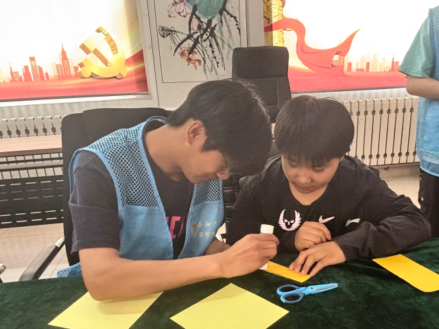 活动伊始,志愿者以动画短片《小满的故事》开启课堂,让孩子们直观感受到古人顺应天时的智慧。知识科普环节,志愿者通过图文并茂的PPT向小朋友们介绍小满的节气特点、哲学内涵等,让他们对小满节气有了初步的了解;问答互动环节,小朋友们积极举手分享自己了解的节气习俗,激发了他们主动探索传统文化的热情;手工创作环节,志愿者手把手地教小朋友们制作“麦穗”,在他们的耐心指导下,小朋友们小心地将金黄色的卡纸剪裁成细长的麦穗形状,仔细地粘贴各个部分,每一个步骤都充满了乐趣。在欢乐的氛围下,一棵棵独一无二的麦穗逐渐成型,让孩子们对“小满未满,麦渐盈实”的自然规律有了更深的理解,实现了传统文化教育与劳动教育的有机融合。
