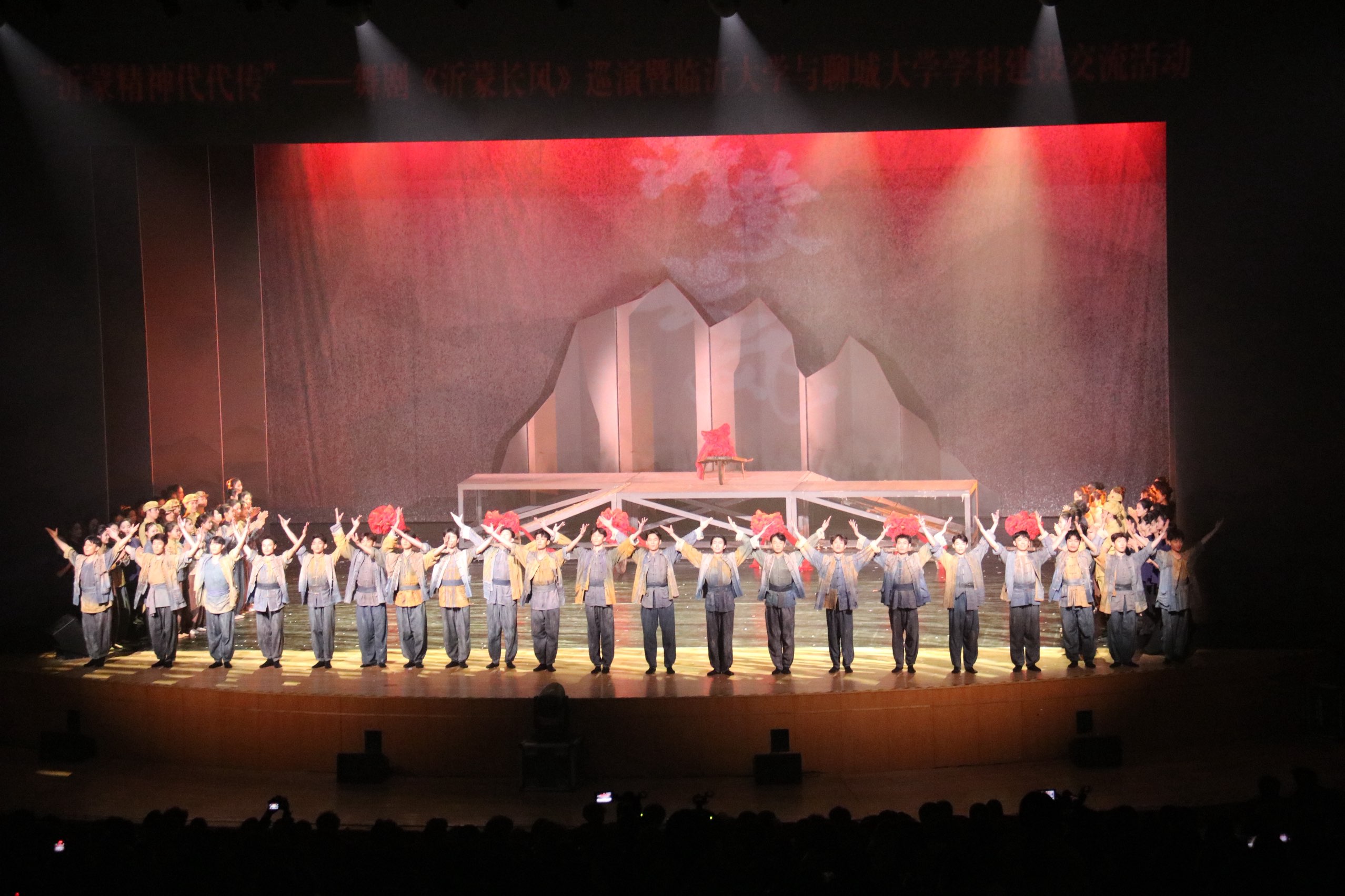 舞剧《沂蒙长风》以沂蒙山革命历史为背景,以“三英烈之父”刘永良一家为原型,讲述永良大叔一家及乡亲们推着小车,历经艰难险阻、舍生忘死,为前线战士运送物资的感人故事。演出过程中,舞蹈动作与音乐旋律的绝妙融合,演员们以艺术化的肢体语言和动情的舞台演绎,重构时间维度,再现沂蒙人民无私奉献、拥军支前的历史场景,极具感染力,让同学们深刻感受到党群同心、军民情深、水乳交融、生死与共的沂蒙精神。舞剧《沂蒙长风》不仅是一部还原历史的艺术作品,更是一堂生动的爱国主义教育课,既让学生进一步了解沂蒙山的历史,更激发了大家汲取父辈精神,投身国家建设的热情。