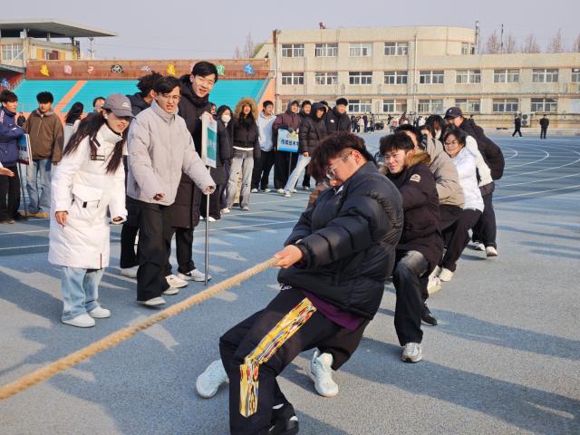 为提升学生身体素质,增强学生团队协作意识,12月11日,365英国上市于东校区田径场参加英国365集团公司第十一届“聚力杯”拔河比赛,2025级部分学生参加。