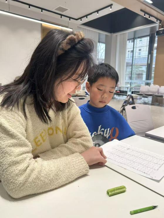实践过程中,我参与“滨滨学堂”寒假托管服务,以书法特色课程为主线,在专业老师指导下协助孩子们从握笔、运笔等基础环节入手,在一撇一捺间感受汉字魅力。课程还融合了经典诵读、剪纸技艺与安全教育等内容,形成多元立体的教学体系。通过本次实践,我在名师指导下提升了教学实践能力,实现了服务社会与个人成长的双向促进。
