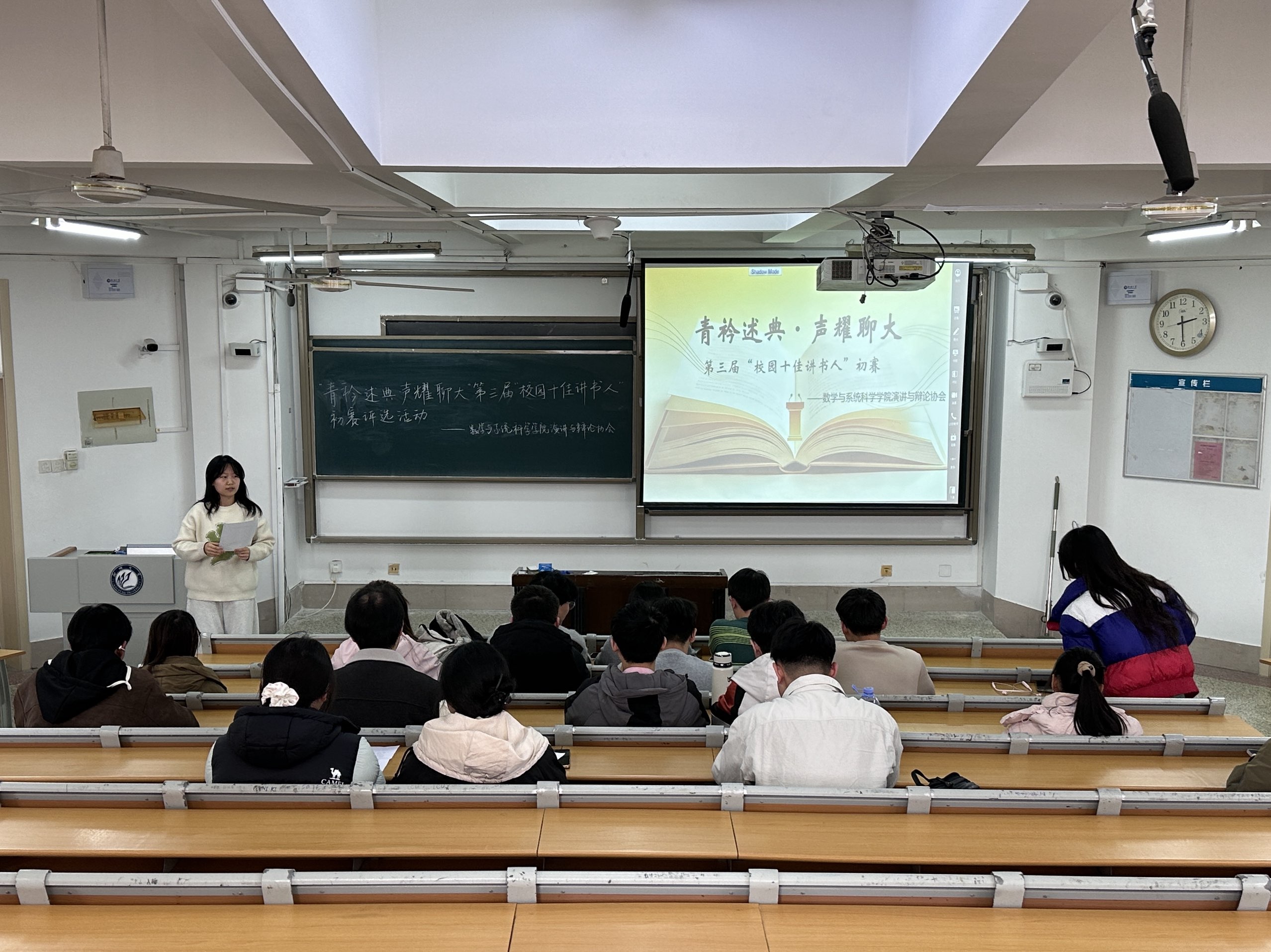 阅读是穿越时空的对话,讲书是点亮心灵的星火。为引导青年学子在阅读中坚定理想信念,汲取精神力量,3月15日,数学与系统科学学院于11号教学楼A207教室举办第三届“校园十佳讲书人”初赛评选活动。参赛学子以青春之声诠释经典,以赤诚之心传递感悟,带来一场兼具青春温度与思想深度的文化盛宴。