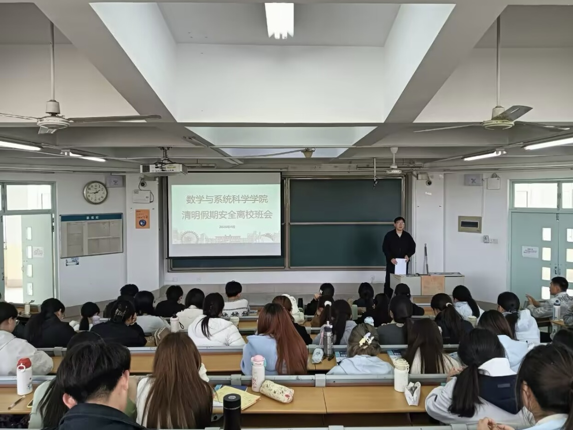 为进一步强化学生假期安全防范意识,筑牢校园安全防线,3月30日至4月1日,数学与系统科学学院开展清明假期安全教育主题班会。本次班会由各班班主任主持,学院全体同学参加。
