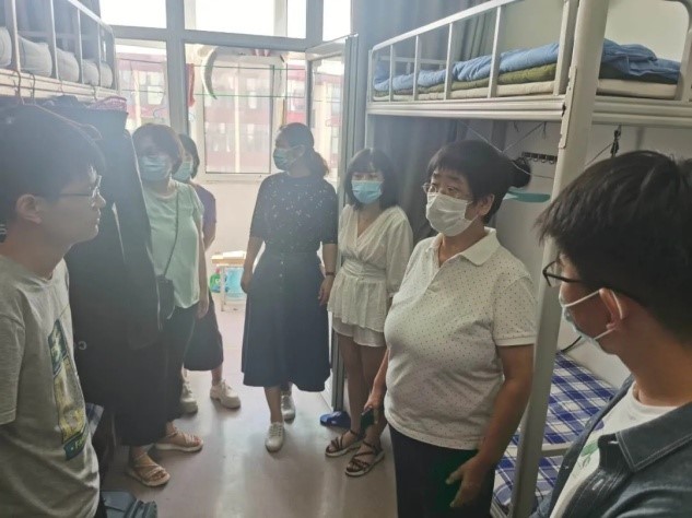 为了解家庭经济困难学生返校后的生活及学习情况,365英国上市范丽亚副院长、办公室赵长平主任、辅导员老师以及班主任老师于9月4日上午十点来到宿舍看望返校贫困生。