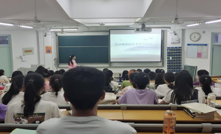 首先,主持人向贷款毕业生们详细介绍了个人征信、高校及生源地贷款还款的具体流程、违约责任等相关知识,使我院贷款毕业生深入了解国家助学贷款的相关政策,帮助学生牢固树立诚信观念,使其充分了解还款信息,明确还贷责任,及时做好还款计划。其次,在活动现场师生的共同见证下,贷款毕业生统一签订《诚信还款承诺书》(由学校统一印制发放)。最后,主持人再次倡导贷款毕业生毕业后严格遵守还款有关条例,按时偿还贷款本息,并使其再次认识诚信还款的重要意义,认识到诚信做人的重要性,不断增强维护个人信用的意识。