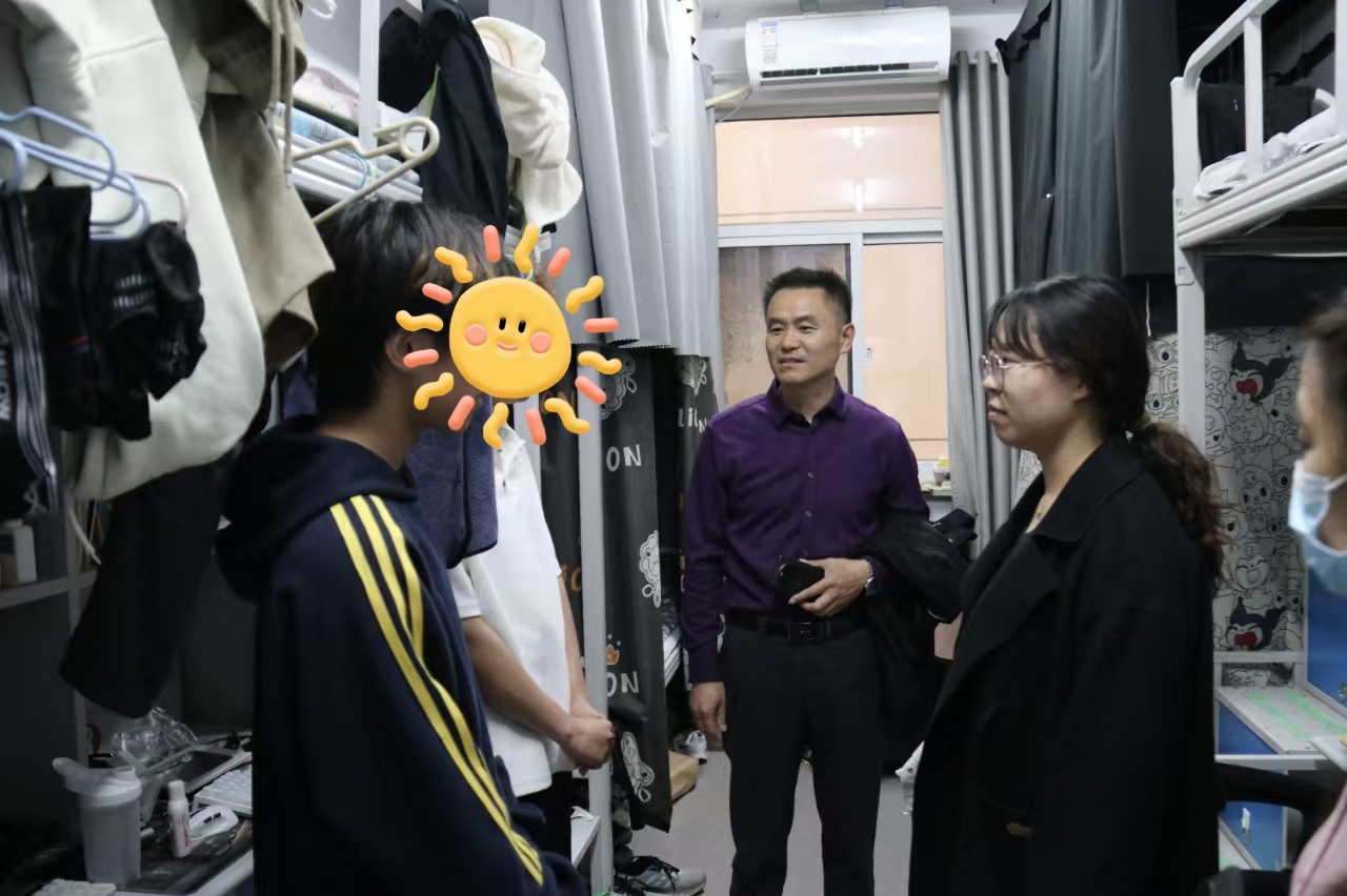 走访过程中,老师们亲切地与同学们交谈,每到一间宿舍,都会详细询问大家的学习状态、生活需求以及在生活中是否遇到困难,并对干净整洁的宿舍给予了充分肯定,同时也对宿舍卫生、安全等存在的问题提出了改进建议并鼓励大家继续保持良好的生活习惯。老师们针对学业规划、职业发展等话题与学生进行了深入探讨,共同交流学习方法和成长经验。张进军鼓励同学们以乐观的心态面对困难,努力提升自己,将来以优秀的学习成绩和实践能力走向社会,回报母校,建设祖国。同学们表示定会珍惜大学时光,努力提升自身综合素质,以优异的成绩回报学校与社会的关怀。