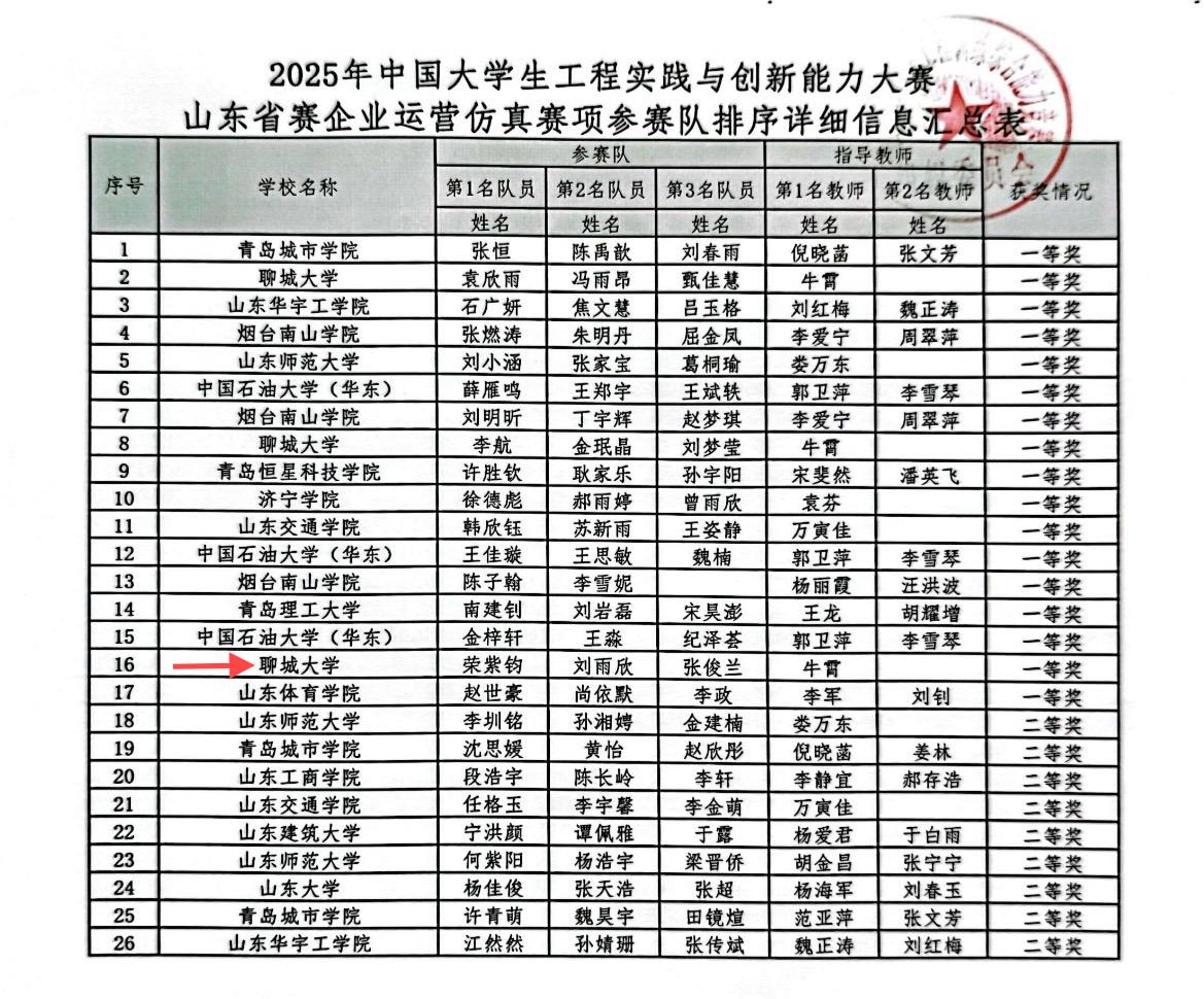 近日,2025年山东省大学生工程实践与创新能力大赛暨2025年中国大学生工程实践与创新能力大赛选拔赛在中国海洋大学(崂山校区)圆满落幕。我院代表队凭借出色的表现,在2025年中国大学生工程实践与创新能力大赛山东省赛企业运营仿真赛项中斩获一等奖。