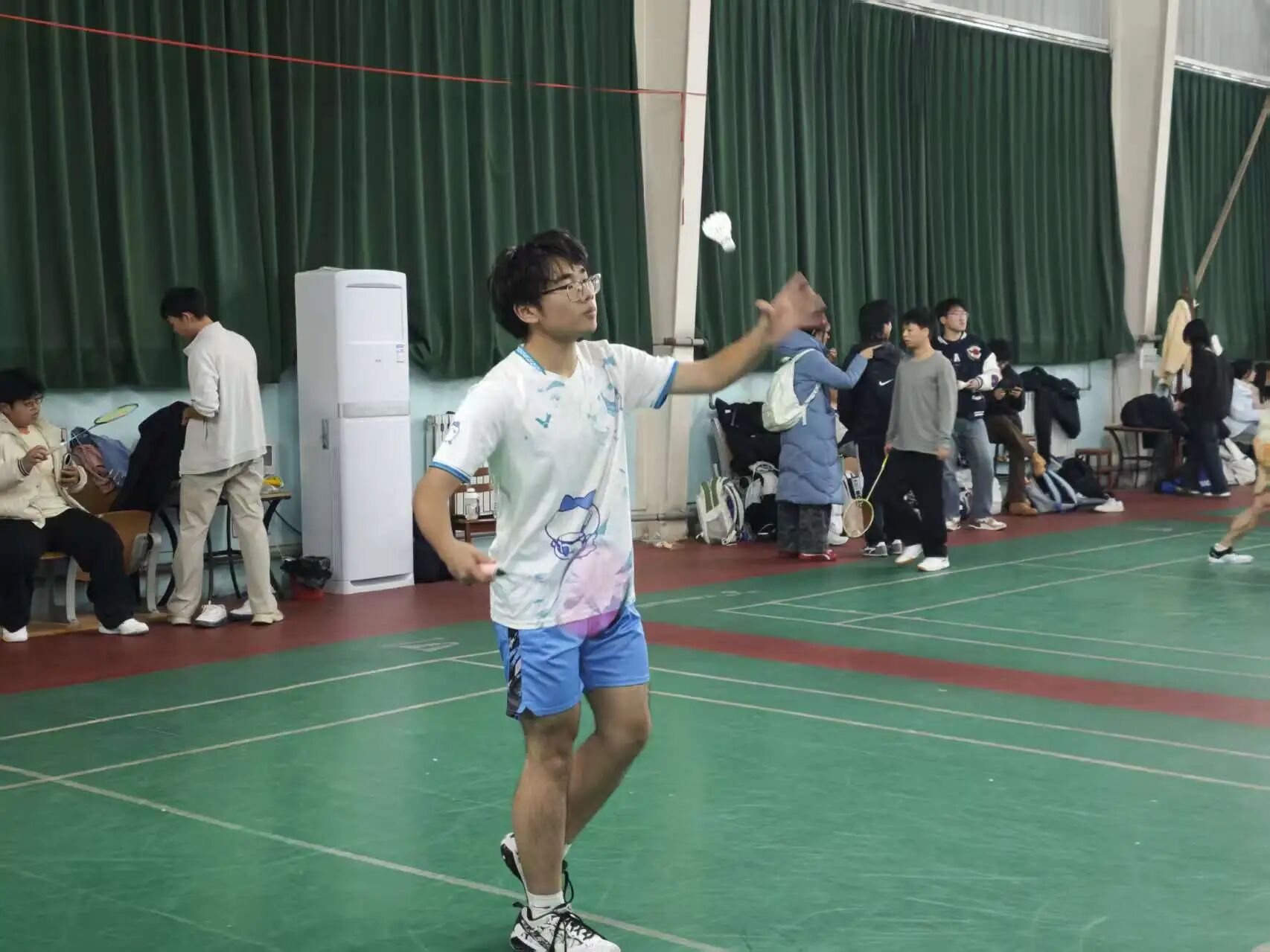 羽毛球赛场上,单打选手们个个精神饱满、步履敏捷,凭借娴熟的技巧展开多轮激烈角逐。每一次精准凌厉的发球,都划出完美弧线;每一次强劲有力的跳起扣杀,都引得全场惊呼;每一次灵巧轻放的网前吊球,又尽显智慧与细腻。在双打配合中,选手们发球落点精准利落,配合默契,后攻前封的强势进攻、左右站位的严密防守、专攻中路的巧思战术,将团队协作能力展现的淋漓尽致。