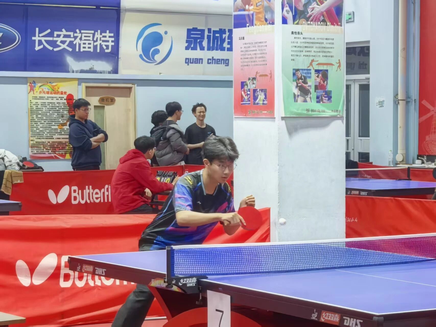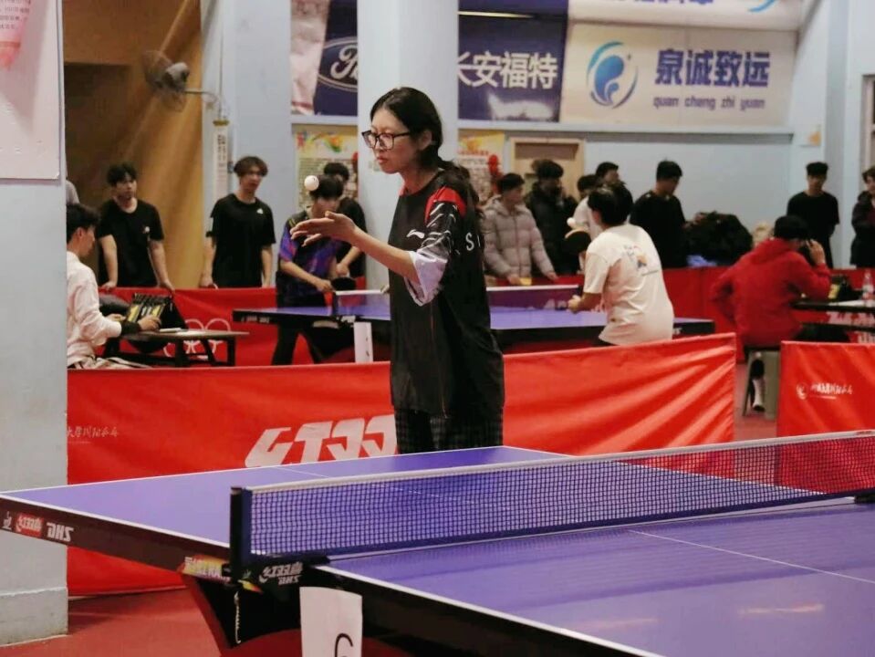 乒乓球赛场上,选手们眉宇间透着沉稳与坚定,紧盯小球轨迹。发球时,手腕轻旋发力,乒乓球划出凌厉弧线擦网而过;接球时,跨步急冲,球拍稳稳迎击,清脆的击球声此起彼伏。相持阶段,选手们灵活移动,时而弓步探身轻挑,时而侧身转体猛攻,眼中闪烁着拼搏与坚定的光芒,尽显数科学子的竞技风貌。