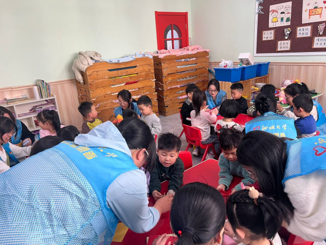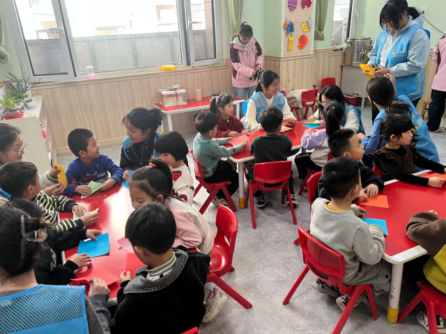 为增强幼儿园小朋友的创新意识,加深他们对传统文化的认知,3月20日,365英国上市2023级6班团支部于翰林苑幼儿园开展“花影跃指尖,翻花续千年”社会实践活动。