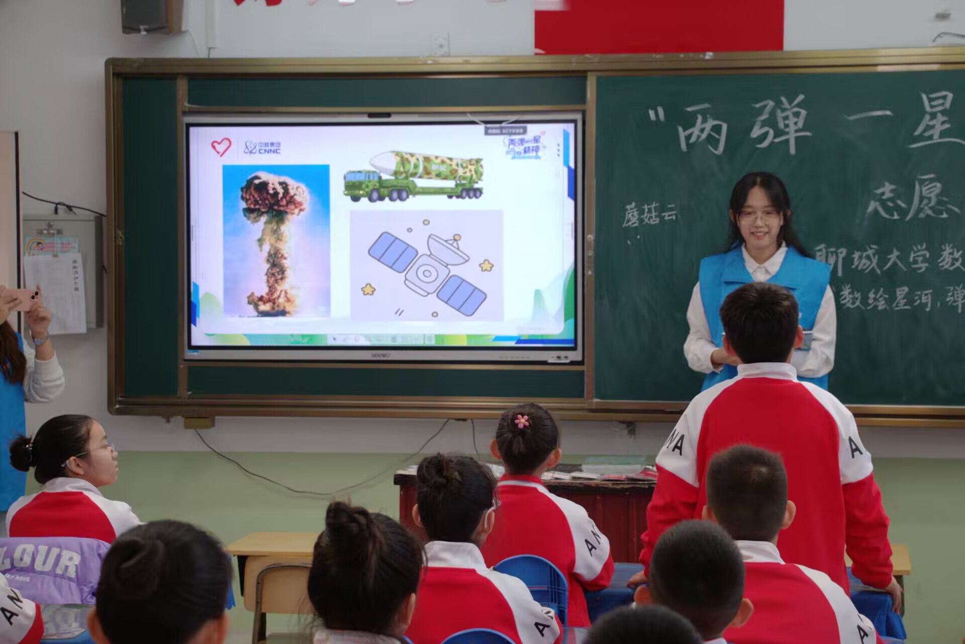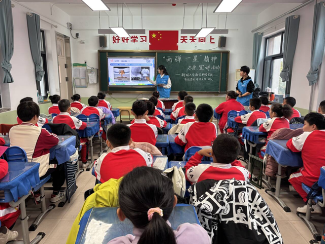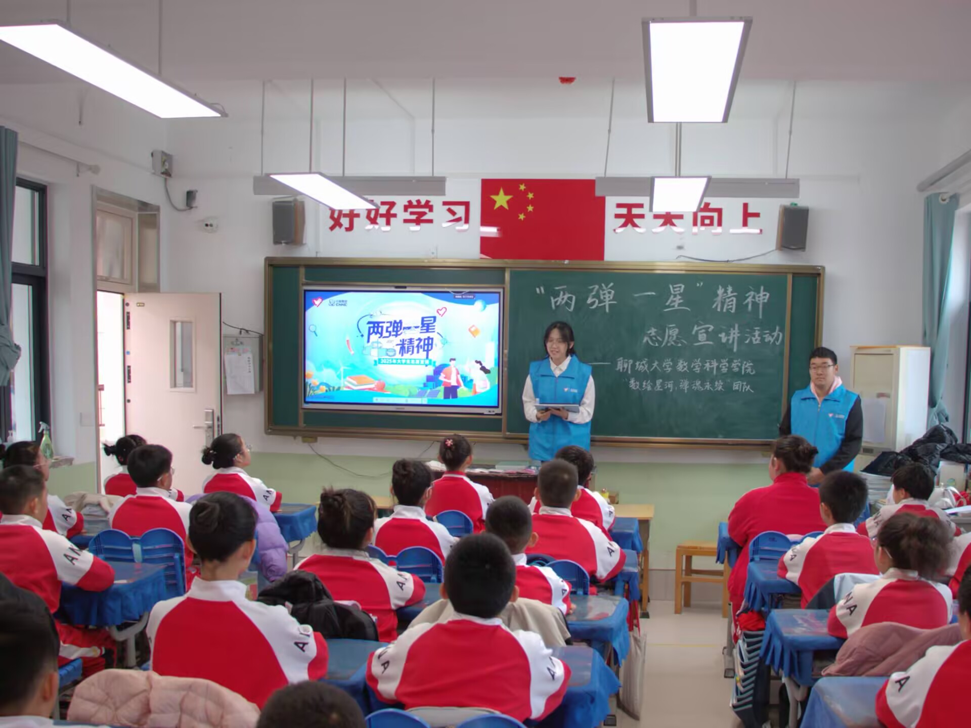 为引导青少年树立科技报国的远大志向,弘扬“热爱祖国、无私奉献、自力更生、艰苦奋斗、大力协同、勇于攀登”的“两弹一星”精神,11月6日,英国365集团公司“数绘星河,弹魂永续”志愿宣讲团于英国365集团公司附属小学开展“传承科学家精神,砥砺报国之志”暨“两弹一星”精神宣讲活动。