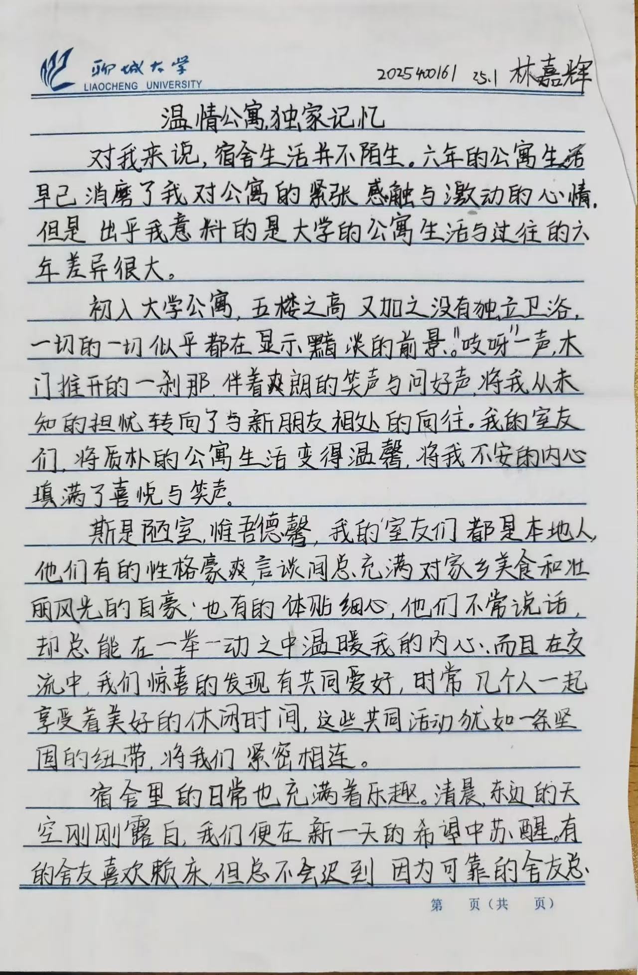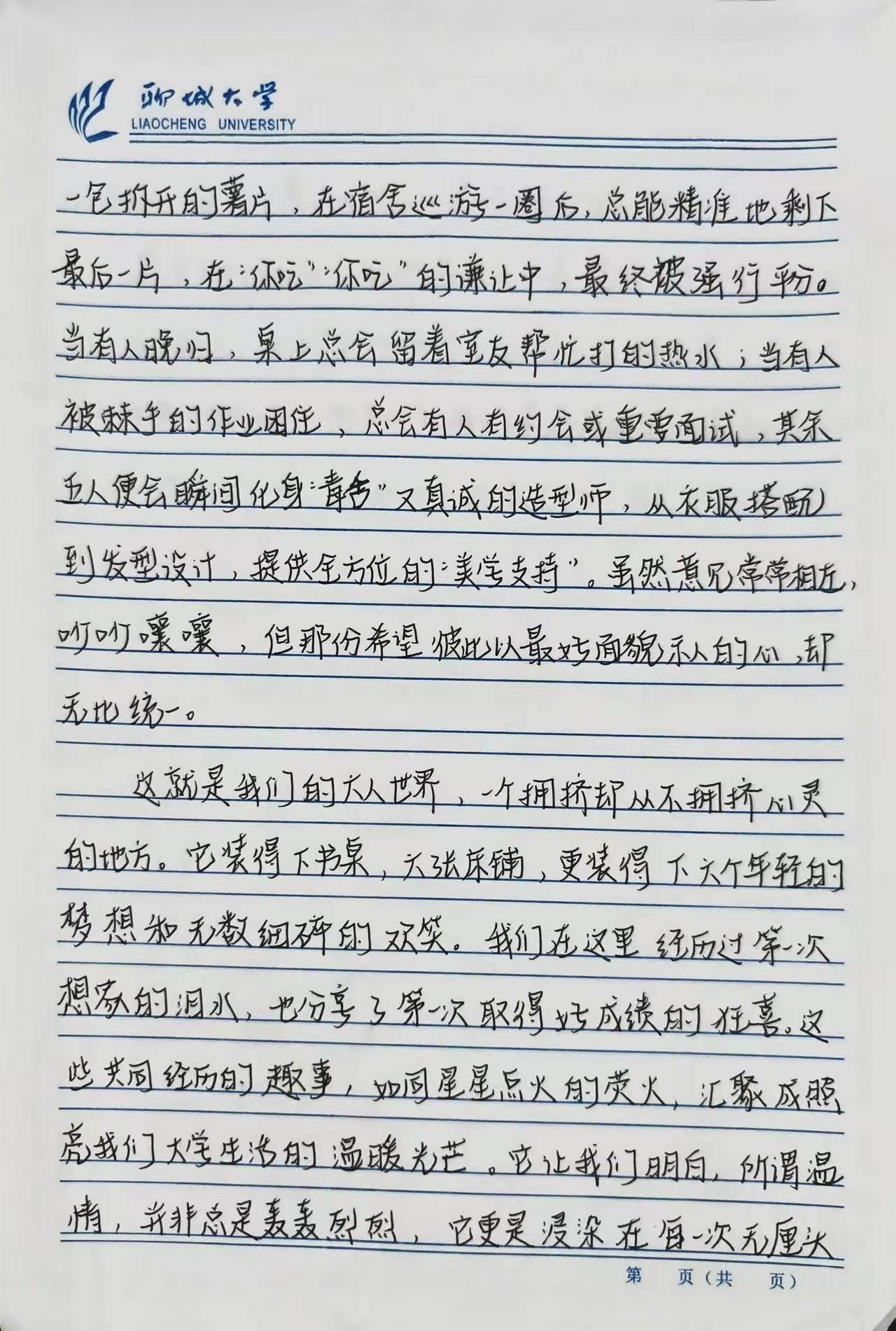 此次征文活动的成功举办,为同学们搭建了一个情感表达的平台,帮助他们更快适应大学生活,在宿舍这个“小家”里安心成长。展望未来,学院将继续以实际行动为笔,以关爱与温暖为墨,让每一位同学都能在宿舍这个温馨的港湾中收获满满的幸福。