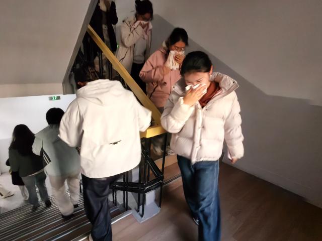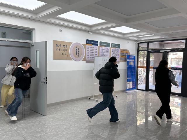 演练模拟真实的火情场景,以警报声为启动信号。在引导员的指挥下,同学们反应迅速、行动有序,严格按照“掩口鼻,低姿势”的规范要求,沿指定疏散路线快速、有序撤离至安全集合区,展现出良好的纪律意识和应急素养。活动现场,负责人向学生讲解逃生要点,强调熟悉消防通道、安全出口位置的重要性,并指导学生掌握湿毛巾捂口鼻、低姿缓行等科学自救方法。疏散完毕后,负责人于集合区进行现场总结,清点人数确保人员安全。演练过程组织严密、各环节衔接顺畅,学生映应迅速、撤离高效,最终实现全员安全撤离,达到了预期效果。