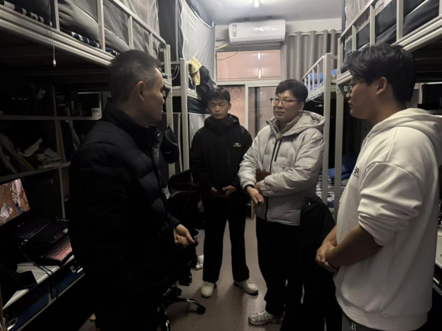 为进一步筑牢校园安全防线,掌握学生返校后的学习生活状况,营造安全有序、温馨舒适的宿舍育人环境,近日,数学与系统科学学院党委副书记、副院长张进军带领全体辅导员、班主任深入学生宿舍,开展宿舍安全专项检查与走访交流活动,推动校园安全教育与人文关怀落地见效、走深走实。