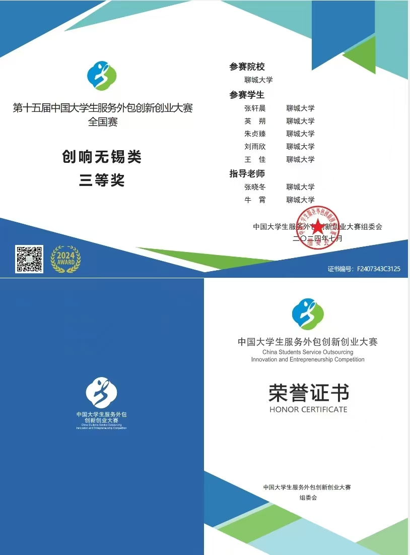 创新是时代的脉搏,唯有不断进取,方能奏响时代的强音。刘雨欣不仅在学术上追求卓越,还积极投身于创新创业活动,展现了出色的创新能力和实践精神。她在多项国家级和省级赛事中荣获多种奖项,包括中国大学生服务外包创新创业大赛三等奖、ICAN大学生创新创业大赛三等奖等。此外,她不断拓展自己的知识领域,积极学习计算机办公和编程技术,获得全国计算机等级考试二级WPS和Python合格证书,全面提升自身的综合素质,为未来的事业发展打下坚实的基础。