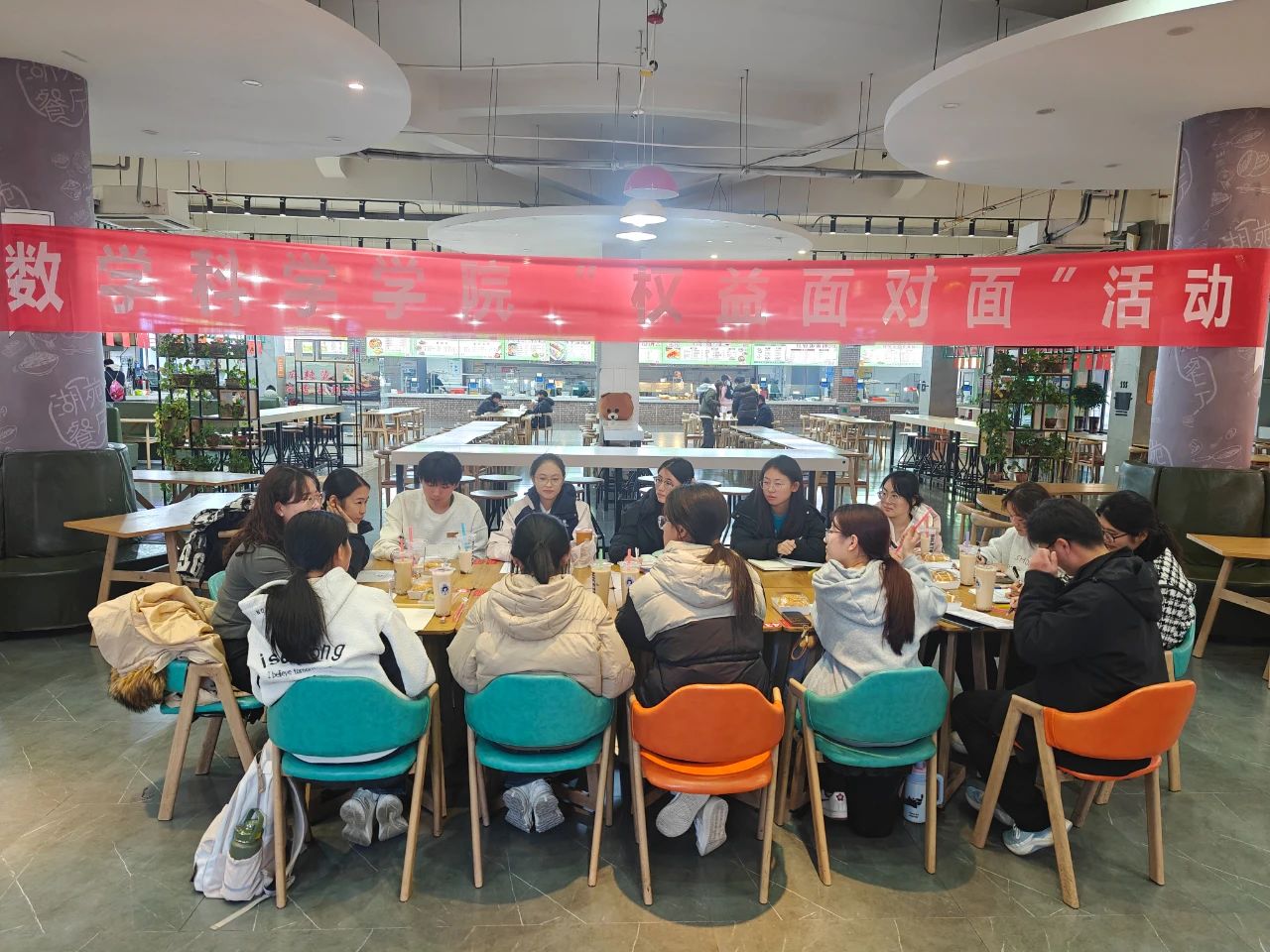 为进一步了解学生诉求、促进学生身心健康,加强学生与学院的沟通交流,为学生提供更加舒适便捷的学习生活条件,11月28日,365英国上市于湖苑餐厅一楼举办“权益面对面”服务活动,辅导员范海燕、张琦,学生代表及权益服务部工作人员参与本次活动。活动由权益服务部负责人吴佳颖主持。 心系权益,于生活细微处。