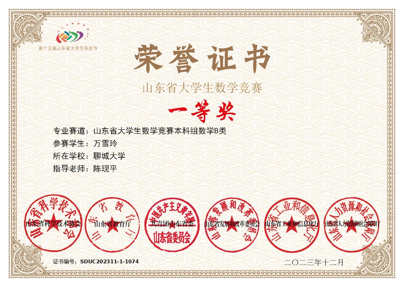第十四届山东省大学生数学竞赛(数学B类)一等奖