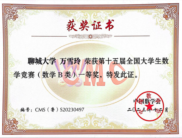 2023年12月 第十五届全国大学生数学竞赛(数学B类)一等奖