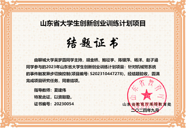 2024.03 山东省大学生科技创新大赛二等奖