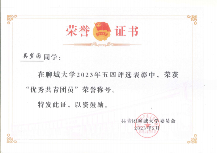 2023.05 优秀共青团员