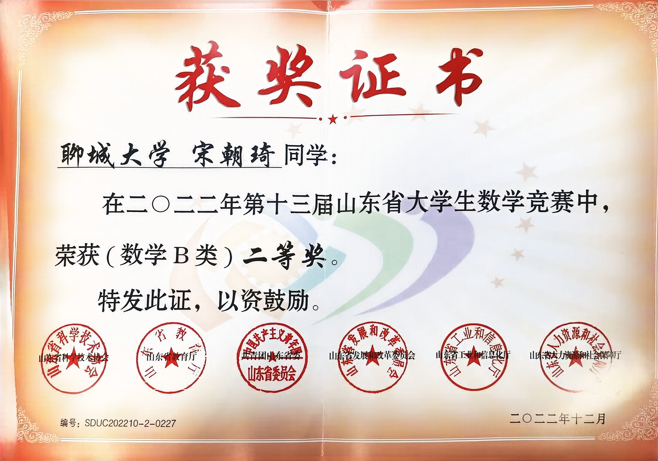 2022.12 二等奖学金