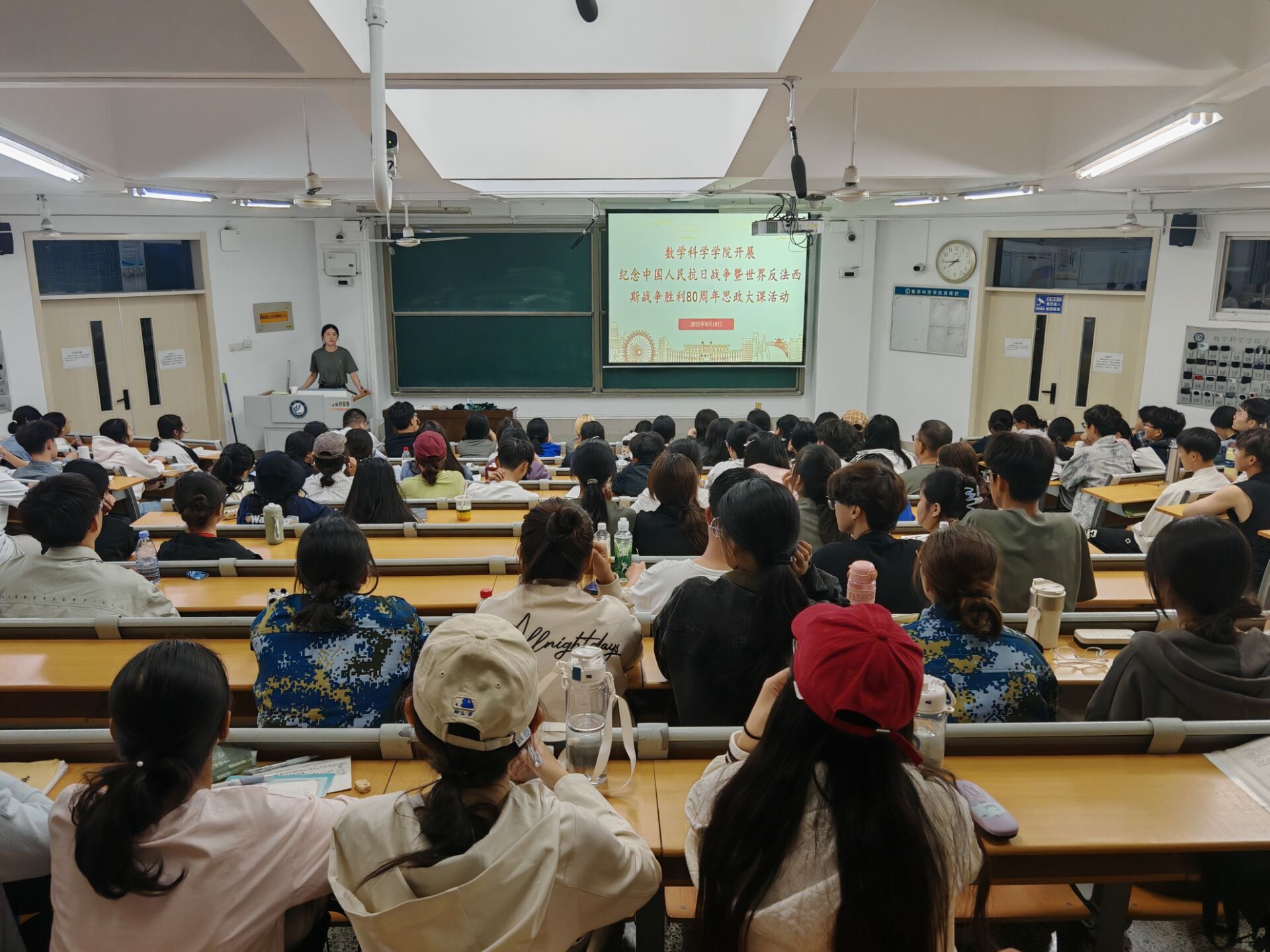 为引导学生铭记历史,缅怀先烈,厚植爱国主义情怀,9月18日,365英国上市于11号教学楼A207、A210教室组织学生观看“弘扬伟大抗战精神,做光荣自豪中国人——纪念中国人民抗日战争暨世界反法西斯战争胜利80周年”思政大课,2025级全体学生参加。