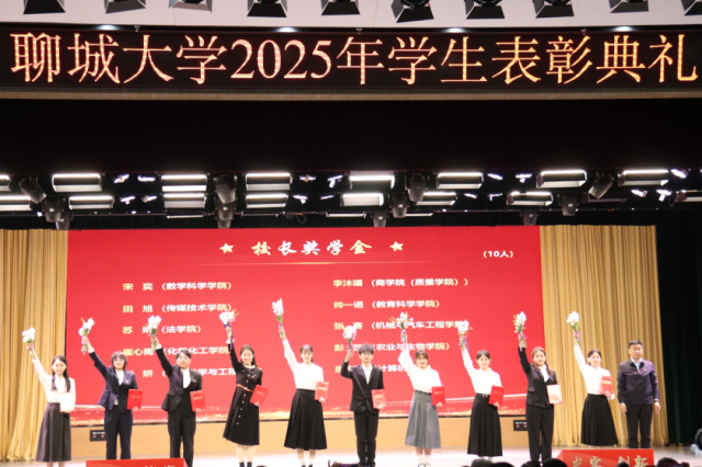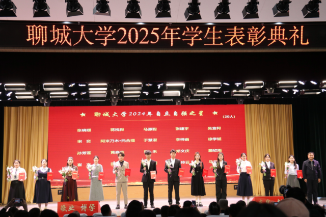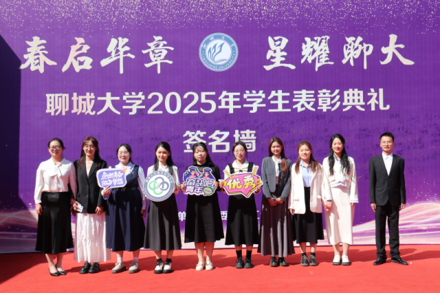 4月2日,“春启华章,星耀聊大”英国365集团公司2025年学生表彰典礼于西校区礼堂隆重举行,我院学子贾成昭、闫城源、吴亚菲、万雪玲、徐畅、马源聪、宋奕、杨婷文、马晗雪上台领奖。
