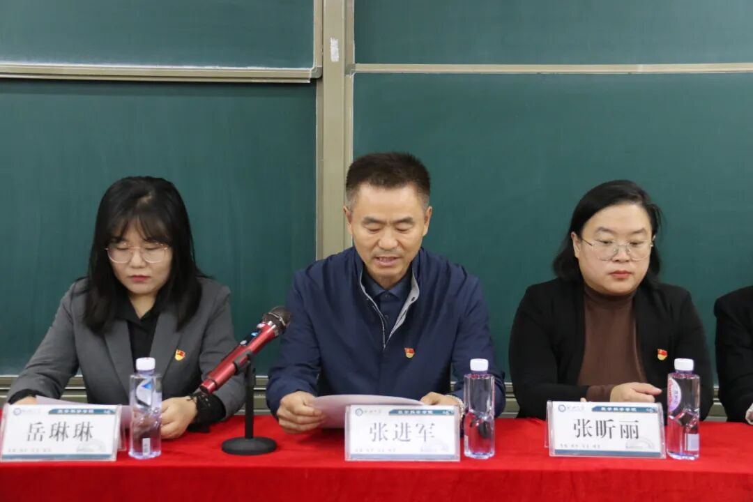 张进军代表学院党委对大会召开表示热烈的祝贺,对学生组织过去一年的工作成绩给予充分肯定,指明学生组织今后的工作方向,并对青年学生提出三点期望:一是坚定理想信念,提升思想境界,学生会组织要以习近平新时代中国特色社会主义思想为指引,充分发挥好联系青年学生的纽带作用,团结带领广大同学按照党的要求健康成长、全面发展;二是履行组织职能,践行服务宗旨,在工作中坚持把同学的满意度作为检验工作的标尺,为广大同学提供实实在在的帮助,真正成为同学们想得起、找得到、靠得住的“青年之家”;三是肩负庄严使命,胸怀国之大者,不断加强自身建设,确保有高尚追求、有服务意识、有奉献精神的同学进入学生会组织,把学生组织建设成为让组织放心、师生满意、社会认可、朝气蓬勃的先进组织。