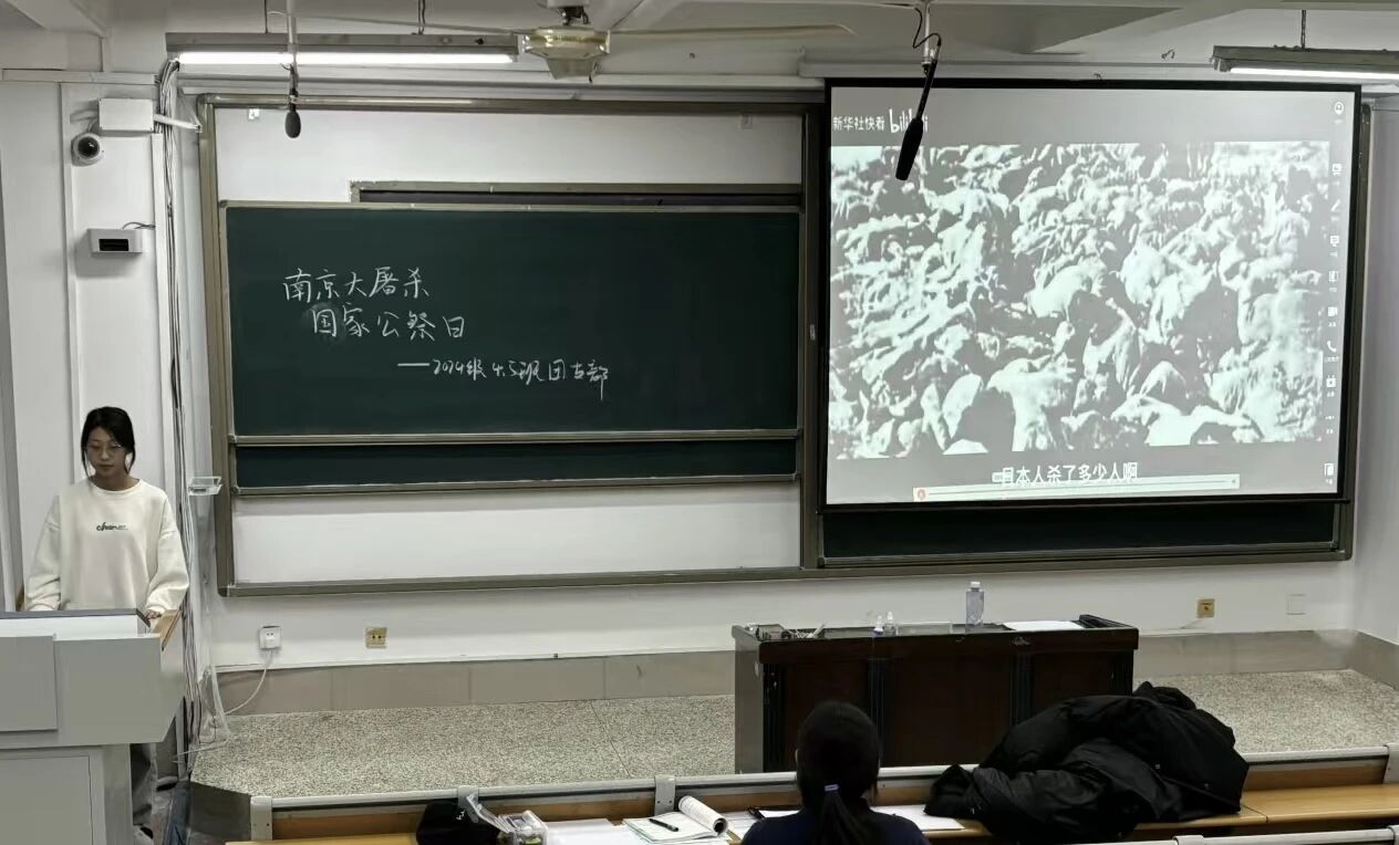 365英国上市2024级4班于11号教学楼A204教室开展“勿忘国耻,振兴中华”国家公祭日主题团日活动,由团支书孙若琪主持。团课伊始,全场肃穆默哀一分钟,向遇难的30余万同胞致以沉痛哀悼,气氛凝重悲怆。随后,以影像资料深度还原那段惨绝人寰的历史:日军暴行下,南京城生灵涂炭、哀鸿遍野,血腥场景震撼着在场每一位同学的心灵,侵略者的罪恶铁证如山,不容置疑与忘却。活动尾声,学生宣誓,誓言铿锵有力,“勿忘国耻,振兴中华”的呼声响彻教室,彰显出青年群体捍卫历史真相、勇担时代使命的坚定决心。此次团课强化了学生对国家公祭日的认知,激励莘莘学子将悲愤化作前行力量,为中华民族伟大复兴矢志拼搏。