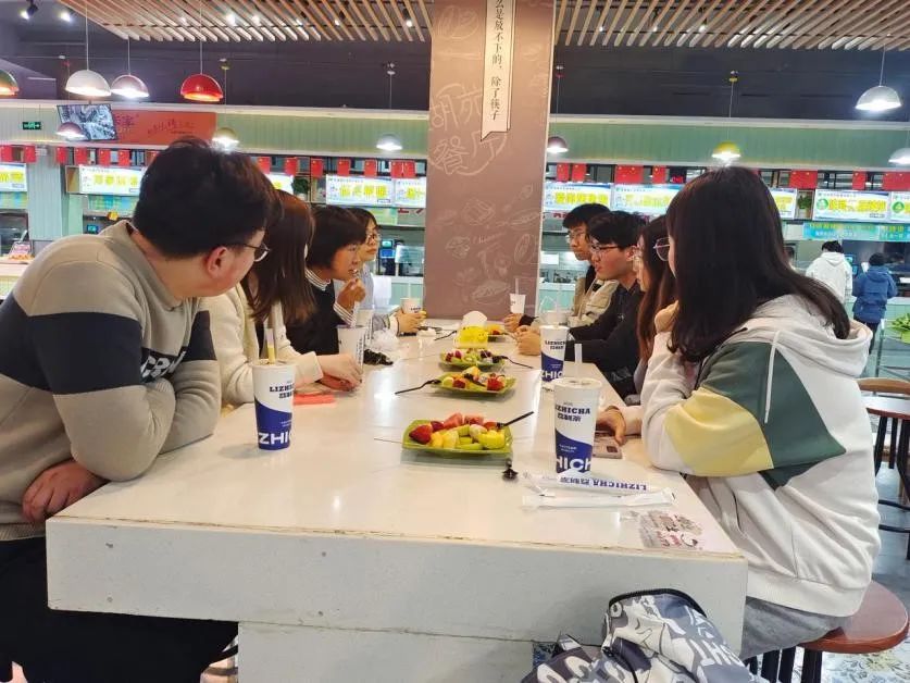 本次活动中,范海燕老师从学业压力,就业压力,人际关系等方面,与同学们进行了沟通,就如何解决这些问题进行了讨论。餐桌上同学们主要提出了毕业考试难度的问题、毕业后的就业问题,如何缓解考研复试紧张问题,找工作面临的笔试和面试复杂心理的问题以及进入社会需要掌握的人际沟通的技巧等。范老师在认真倾听后,对相关问题进行了细致解答和引导。同时邀请2018级3班班长李登奇同学做典型发言,讲述自己在备考公务员过程中的曲折和心情,因为自己的积极阳光,最后获得了笔面第一的好成绩。