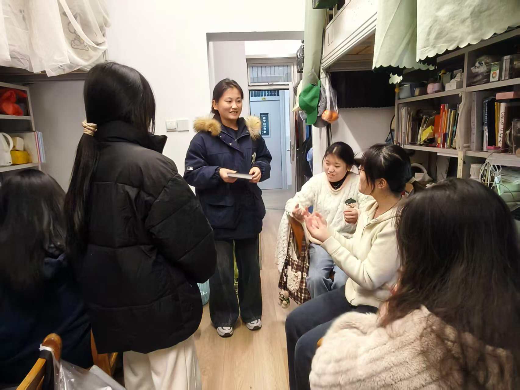 为在考研冲刺阶段为学子送上暖心关怀,缓解备考压力,11月21日,365英国上市在学生宿舍组织开展了“朋辈进宿舍”考研助力活动。学院2025级部分同学组成助力团,为学长学姐送去了一份独特的“心理能量包”。
