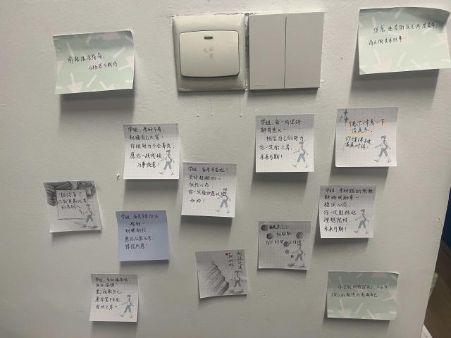 为避免打扰考研同学的复习节奏,同学们特意选择在复习间隙前往宿舍,用热切的问候打破距离感,了解学姐们当下的复习状态,认真倾听她们当前面临的难题,心态调节困扰等,同学们提前准备了解压小礼品,希望学长学姐们在紧凑的复习状态下能适当的放松自己。为营造轻松氛围,同学们还设计了团体辅导小游戏,帮助学长学姐们放松身心,感受来自集体的关怀和温暖。最后,同学们将提前写好的便签祝福语送到学长学姐手中,“愿你笔锋所至,皆是坦途”“冲刺的每一步都算数,加油!”等一句句温暖的话语成为了具象化的情感载体,将朋辈的支持与学院的关怀,稳稳地传递至每个人心中。