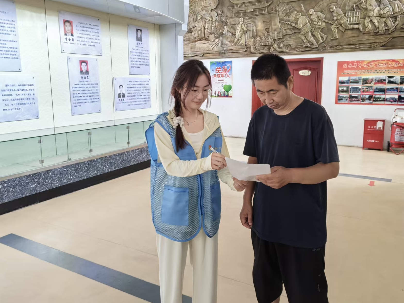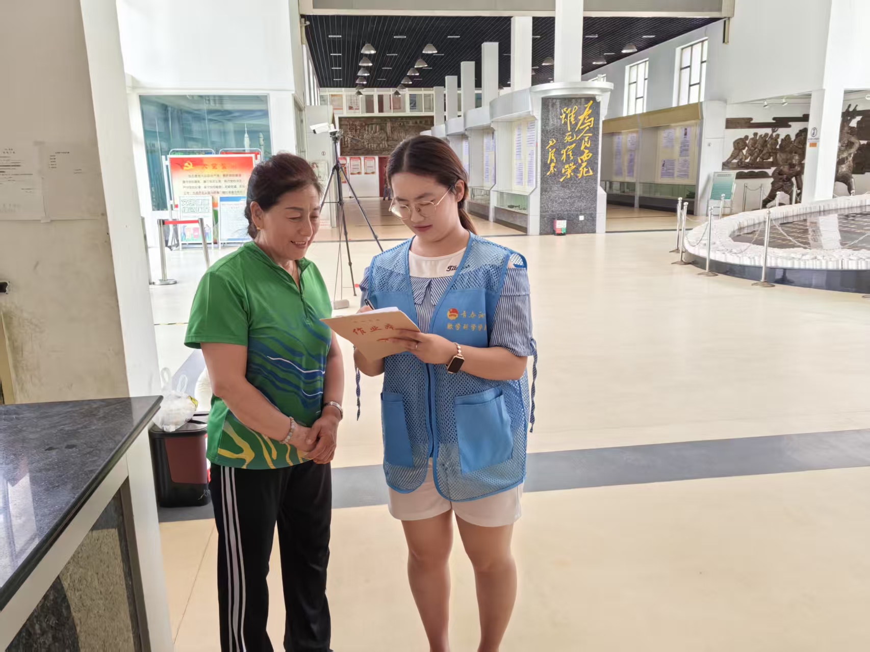 实践队采访纪念堂工作人员,对聊城市革命烈士事迹知晓情况进行了社会调研。同时,成员们对当下学校、社区开展红色文化教育情况展开了调查,了解当下红色文化的真实现状。