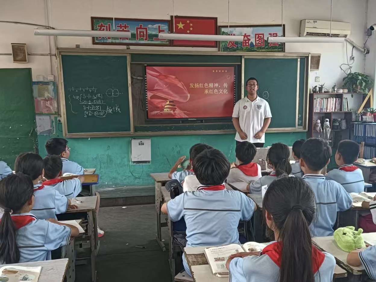 实践队走进菏泽市定陶区北关小学、济宁市泗水县华阳社区为孩子们讲解红色文化讲述红色故事。在宣讲的过程中,队员们了解到当下小学生对红色文化的了解程度较高,几乎每位小学生都能随口说出几个典型的英雄事迹,他们鼓励小朋友们要传承红色精神,牢固树立爱国主义精神观。